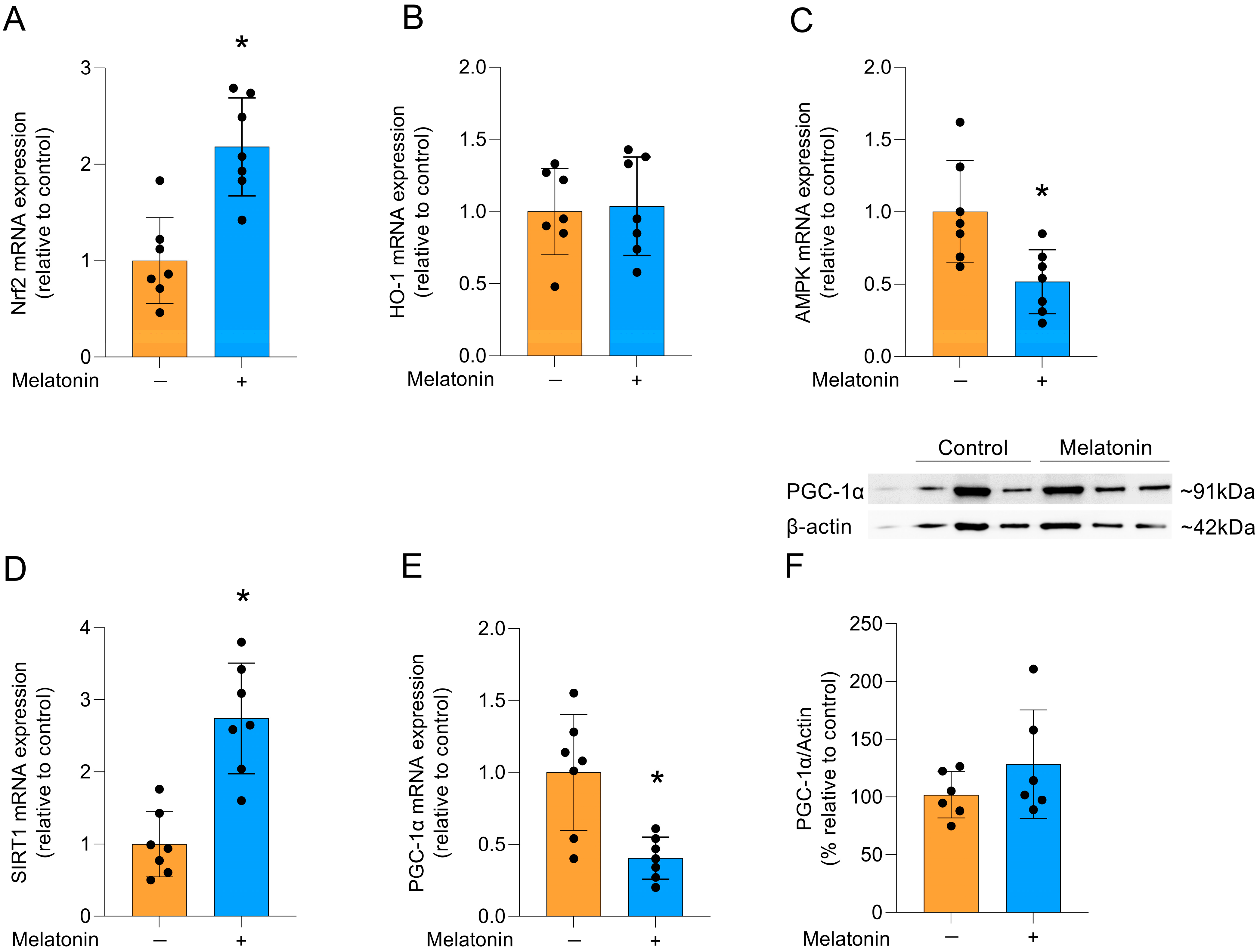 - Kwon, K.J.; Kim, J.N.; Kim, M.K.; Lee, J.; Ignarro, L.J.; Kim, H.; Shin, C.Y.; Han, S. Melatonin Synergistically Increases Resveratrol-induced Heme Oxygenase-1 Expression through the Inhibition of Ubiquitin-dependent Proteasome Pathway: A Possible Role in Neuroprotection. J. Pineal Res. 2011, 50, 110–123. [Google Scholar] [CrossRef]