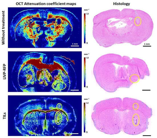 Following the FLIM analysis, the next step was to study the optical properties of the tumor during its natural growth and after therapy by assessing backscattered radiation from the samples using OCT.