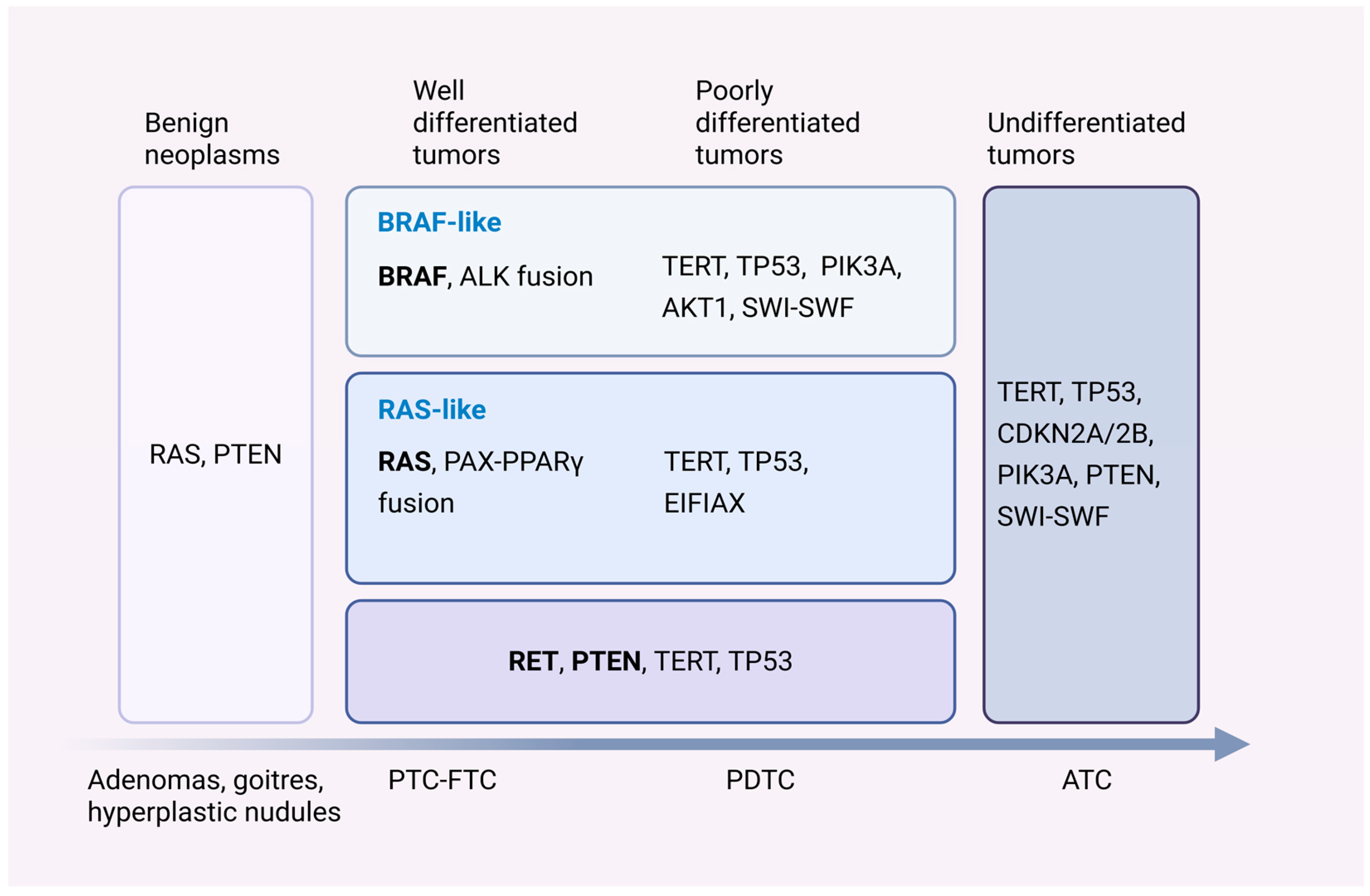 - Landa, I.; Cabanillas, M.E. Genomic alterations in thyroid cancer: Biological and clinical insights. Nat. Rev. Endocrinol. 2024, 20, 93–110. [Google Scholar] [CrossRef]