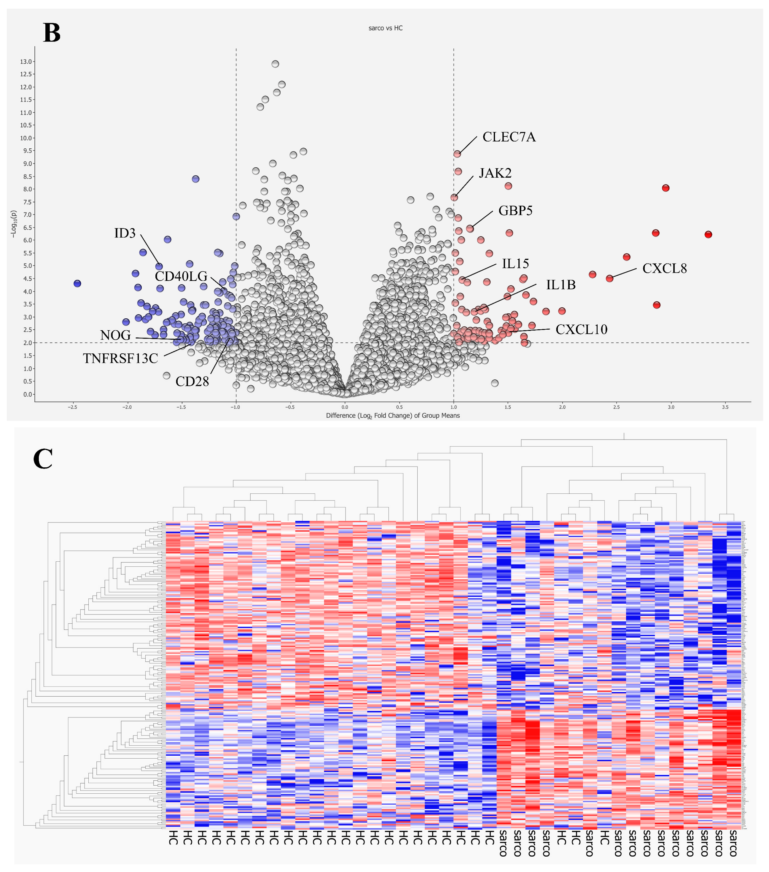 4.1. Patients with Pulmonary Sarcoidosis vs. Healthy Controls (HCs)