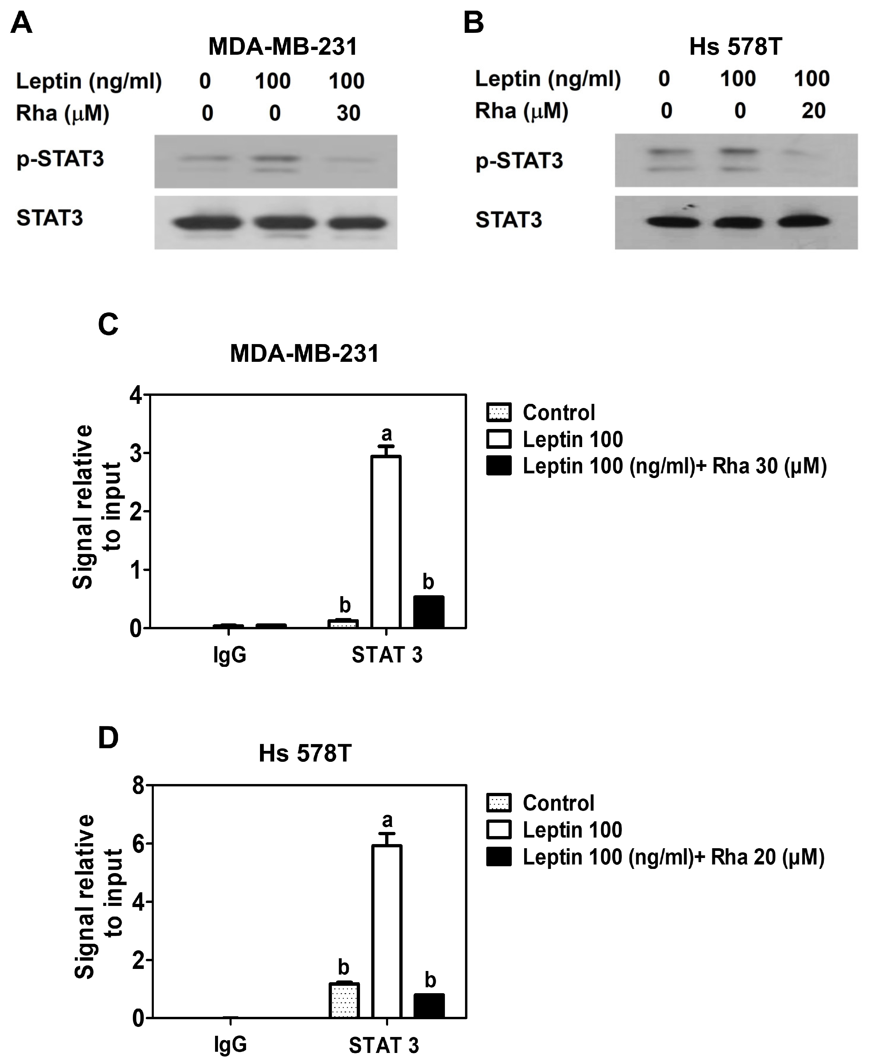 3.2. Rhapontigenin Impaired Leptin-STAT3 Signaling in TNBC Cells