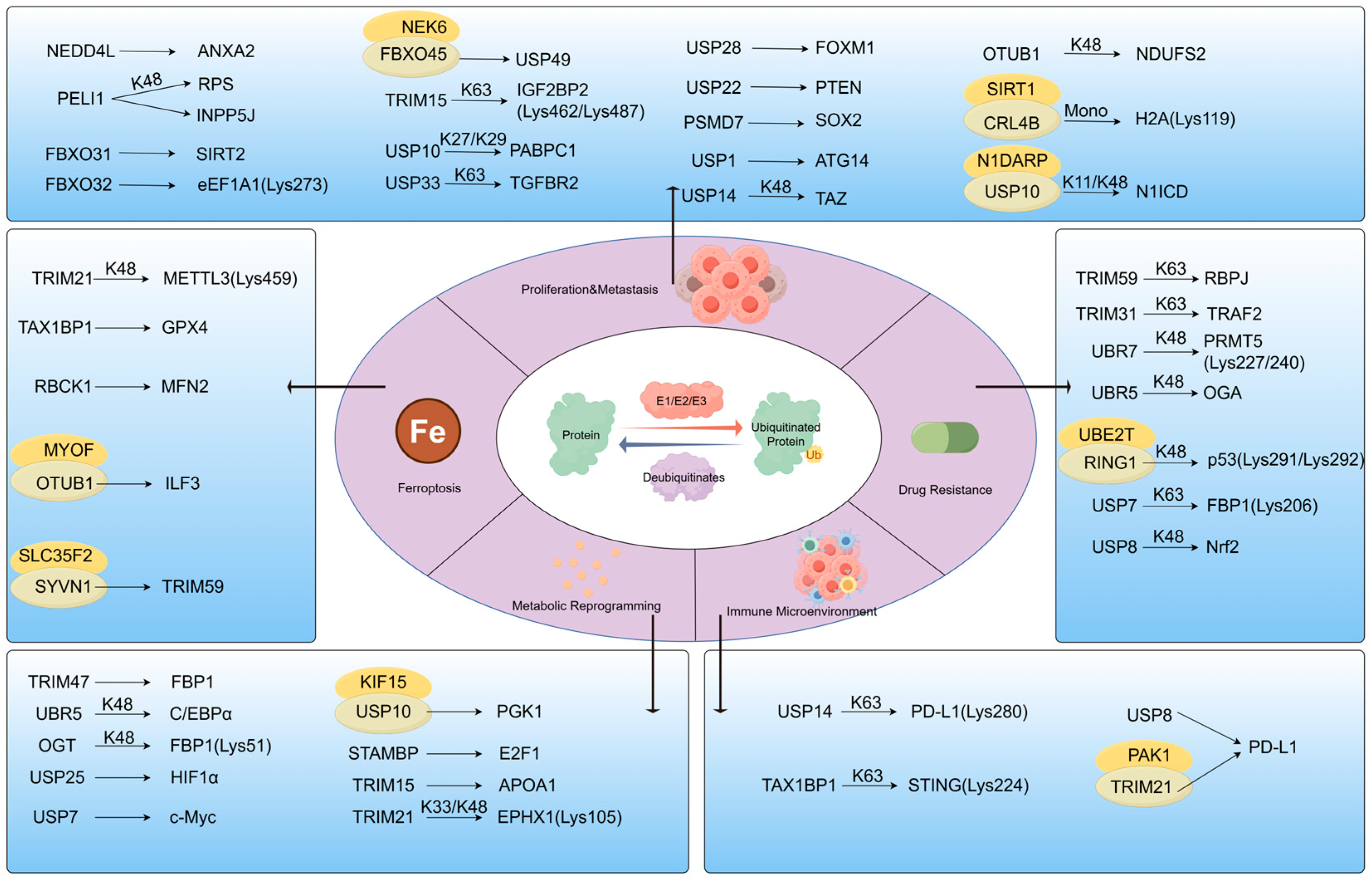 3.2.1. Proliferation and Metastasis by Ubiquitination