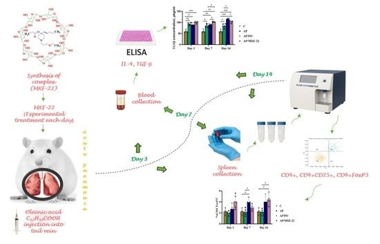 - Balabekova, M.K.; Kairanbayeva, G.K.; Yu, V.K.; Ten, A.Y.; Tokusheva, A.N.; Musayev, A.T.; Koks, S. The effect of MXF-19 on T-regulatory lymphocytes of rats under conditions of aseptic inflammation caused by metal-induced immunodepression. J. Med. Chem. Sci. 2025, 8, 469–478. [Google Scholar]
