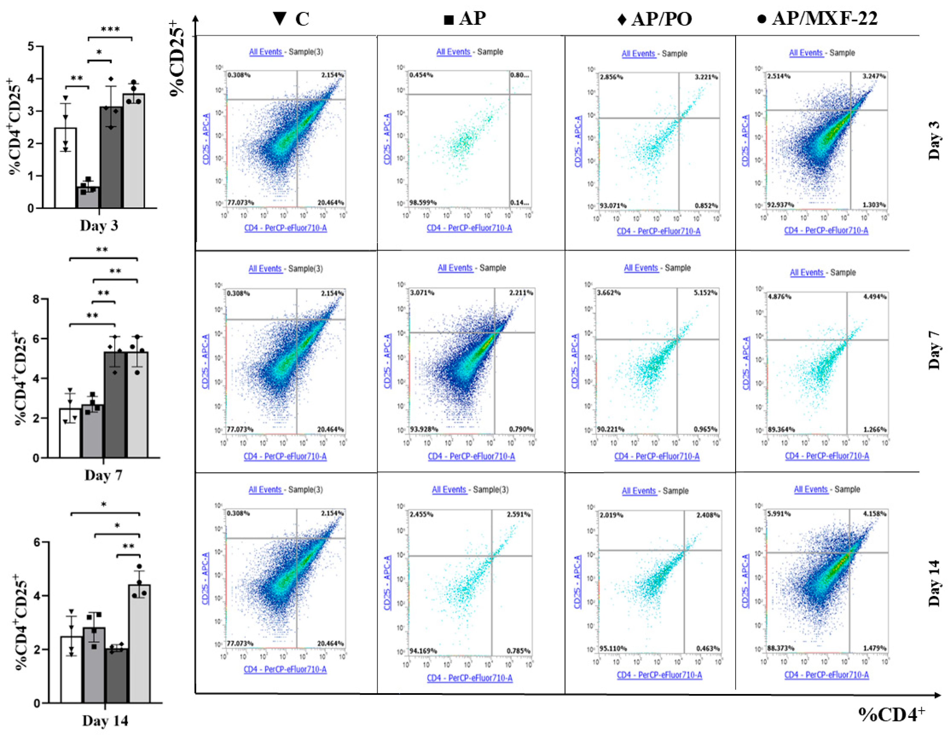 - CD4+CD25+: CD25 expression was evaluated within the CD4+ gate.