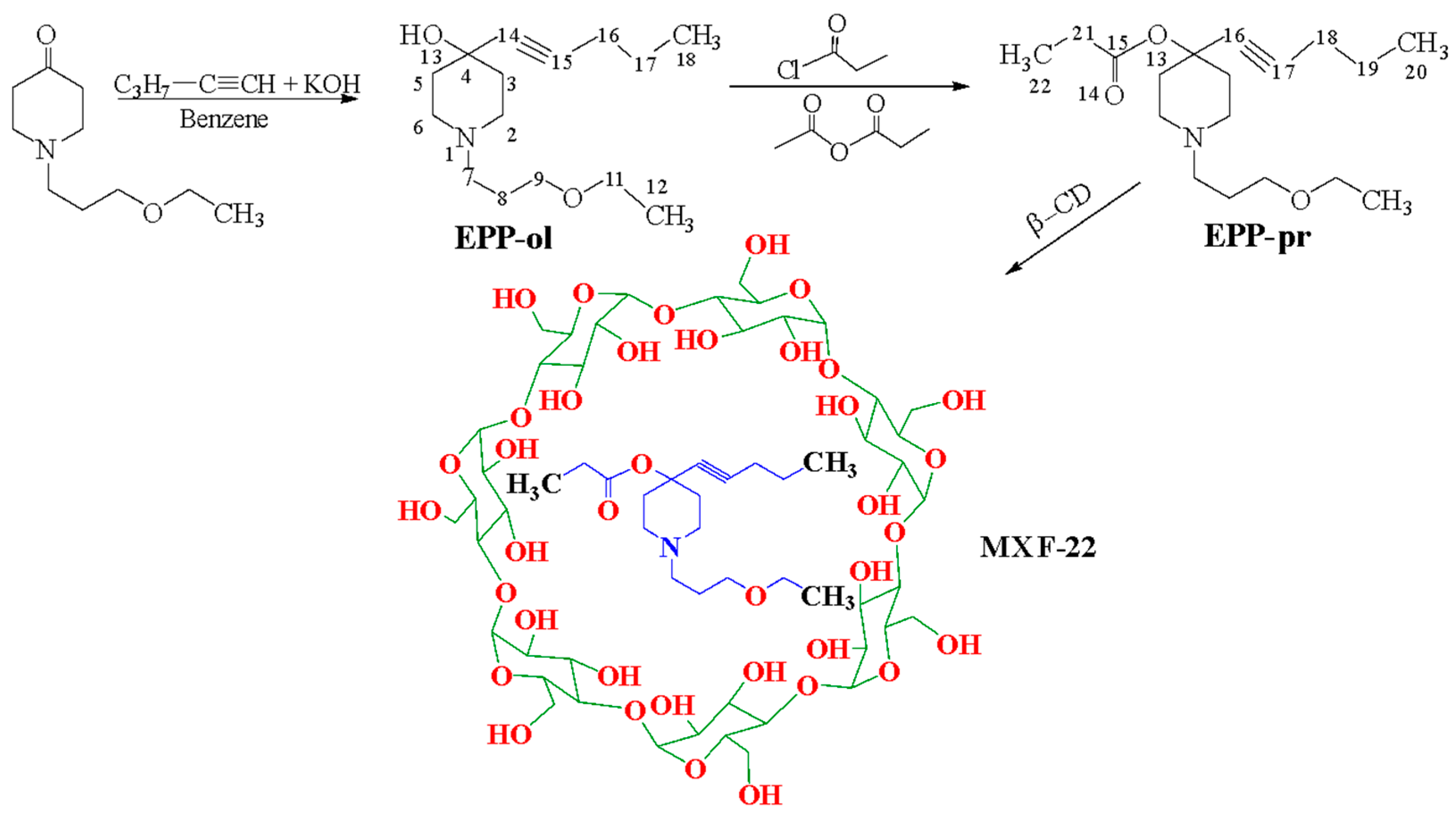 | MXF-22 | Complex of 1-(2-Ethoxypropyl)-4-(pent-1-yn-1-yl)piperidin-4-yl Propionate with β-Cyclodextrin |