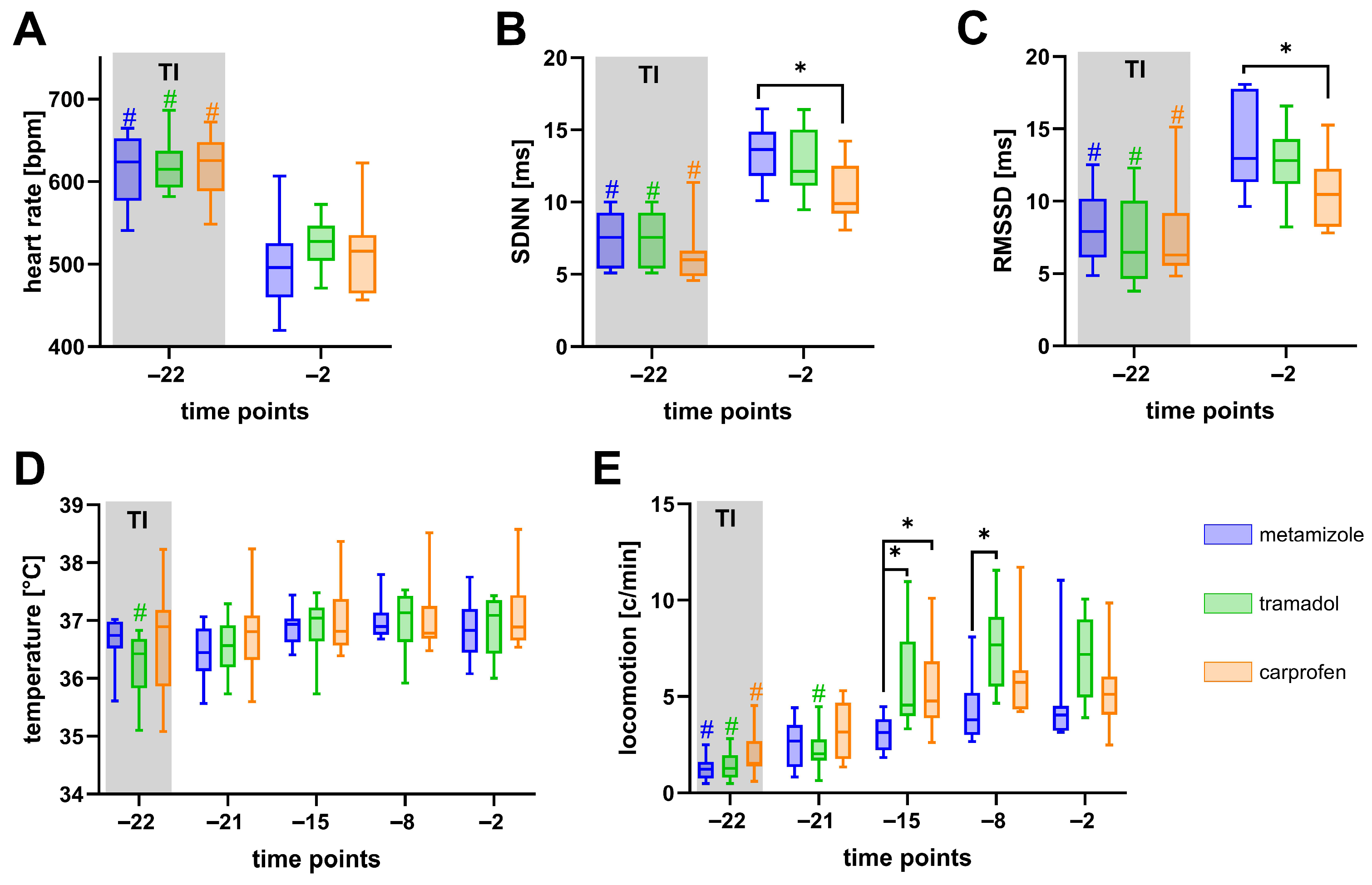 4.3. Recovery After Transmitter Implantation and Analgesics-Specific Effects