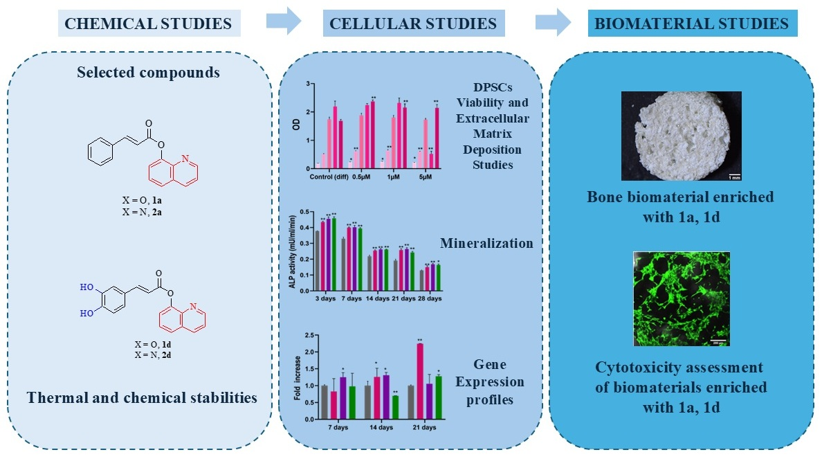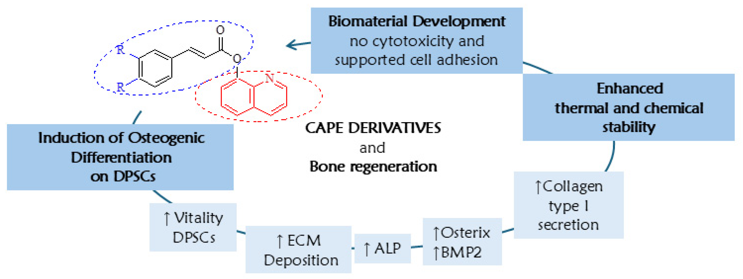 CAPE Derivatives as Potent Agents for Induction of Osteogenic Differentiation in DPSCs and Biomaterial Development