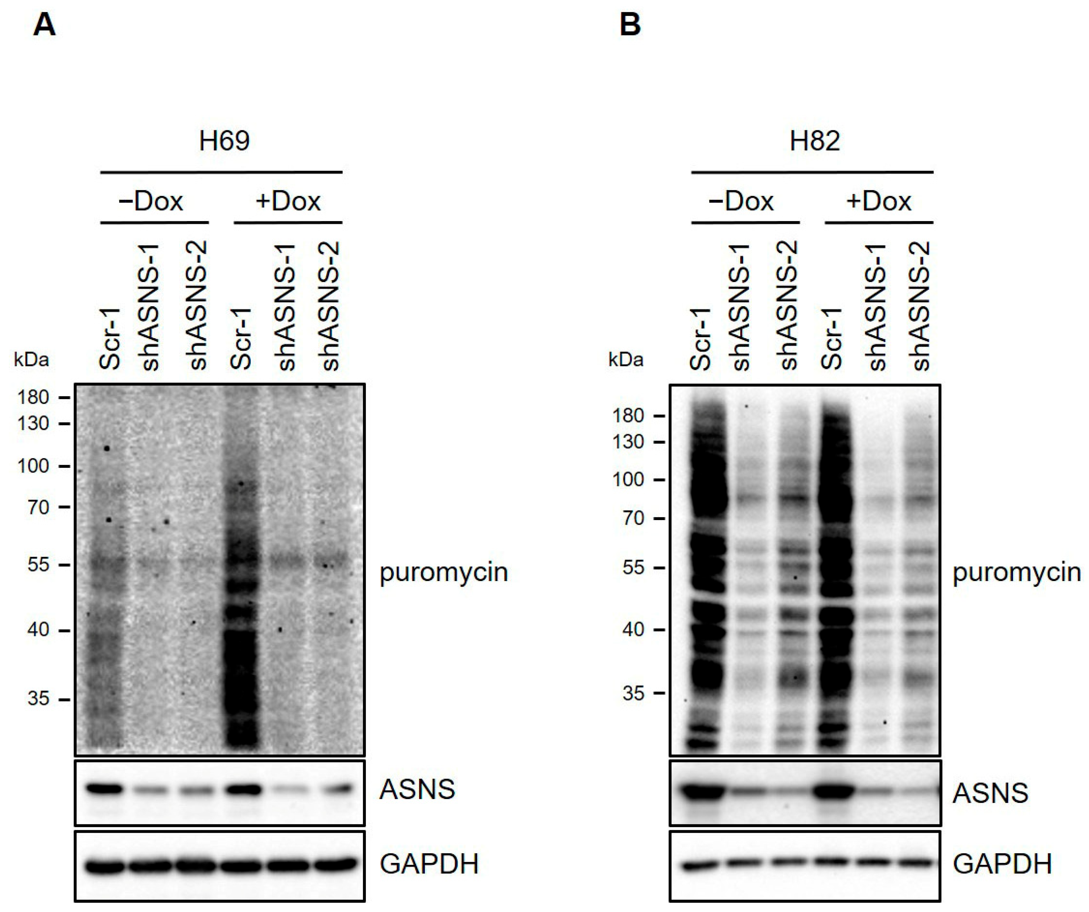3.5. Depletion of ASNS Reduces Ribosomal Transcription Programs in Human SCLC Cells