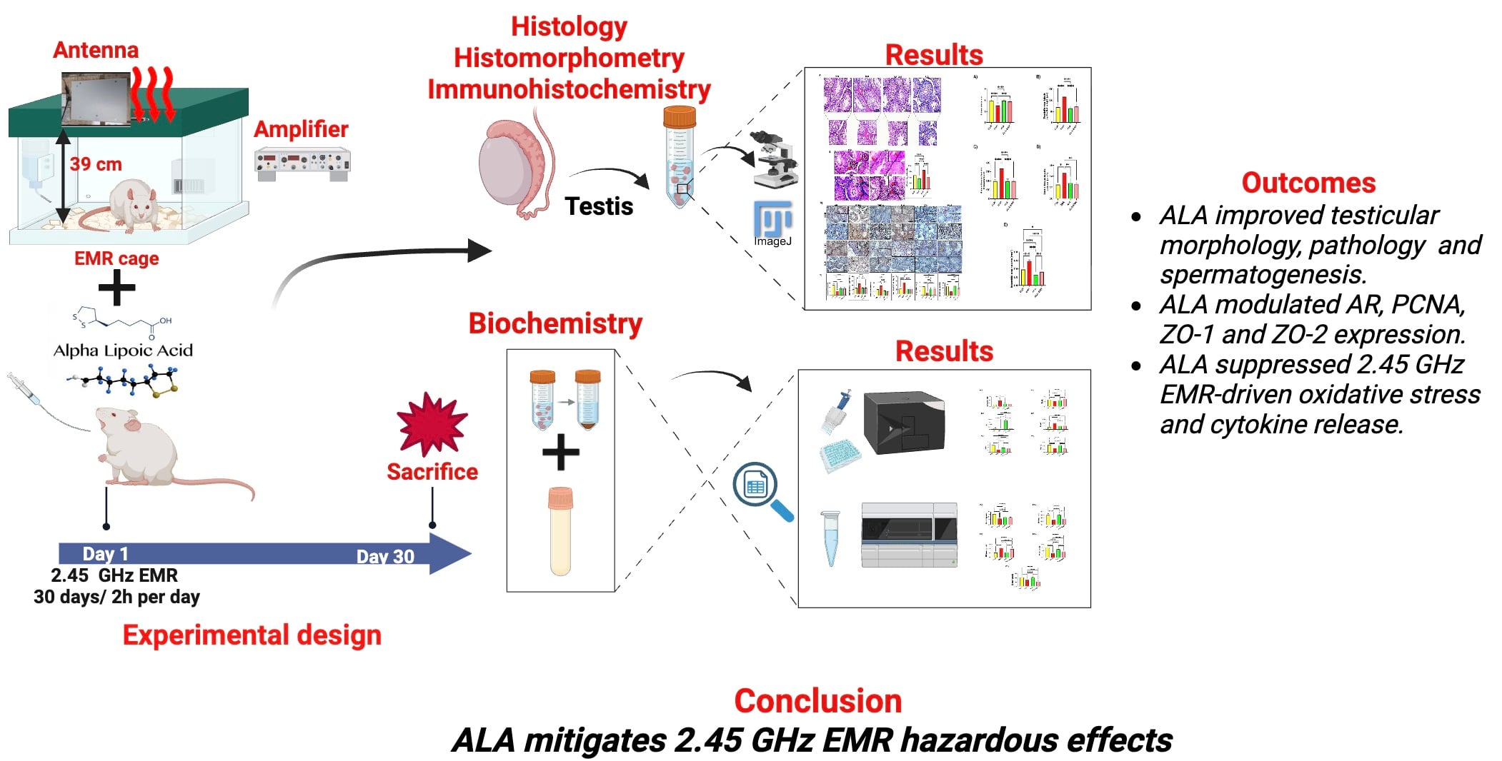 Cakir, T.; Keskin, S.; Yildizhan, K.; Bayir, M.H.; Altindag, F.; Karaman, E. Alpha-Lipoic Acid Preserves Testicular Integrity Under 2.45 GHz Electromagnetic Radiation by Restoring Redox and Inflammatory Balance. Biomedicines 2025, 13, 3089. https://doi.org/10.3390/biomedicines13123089