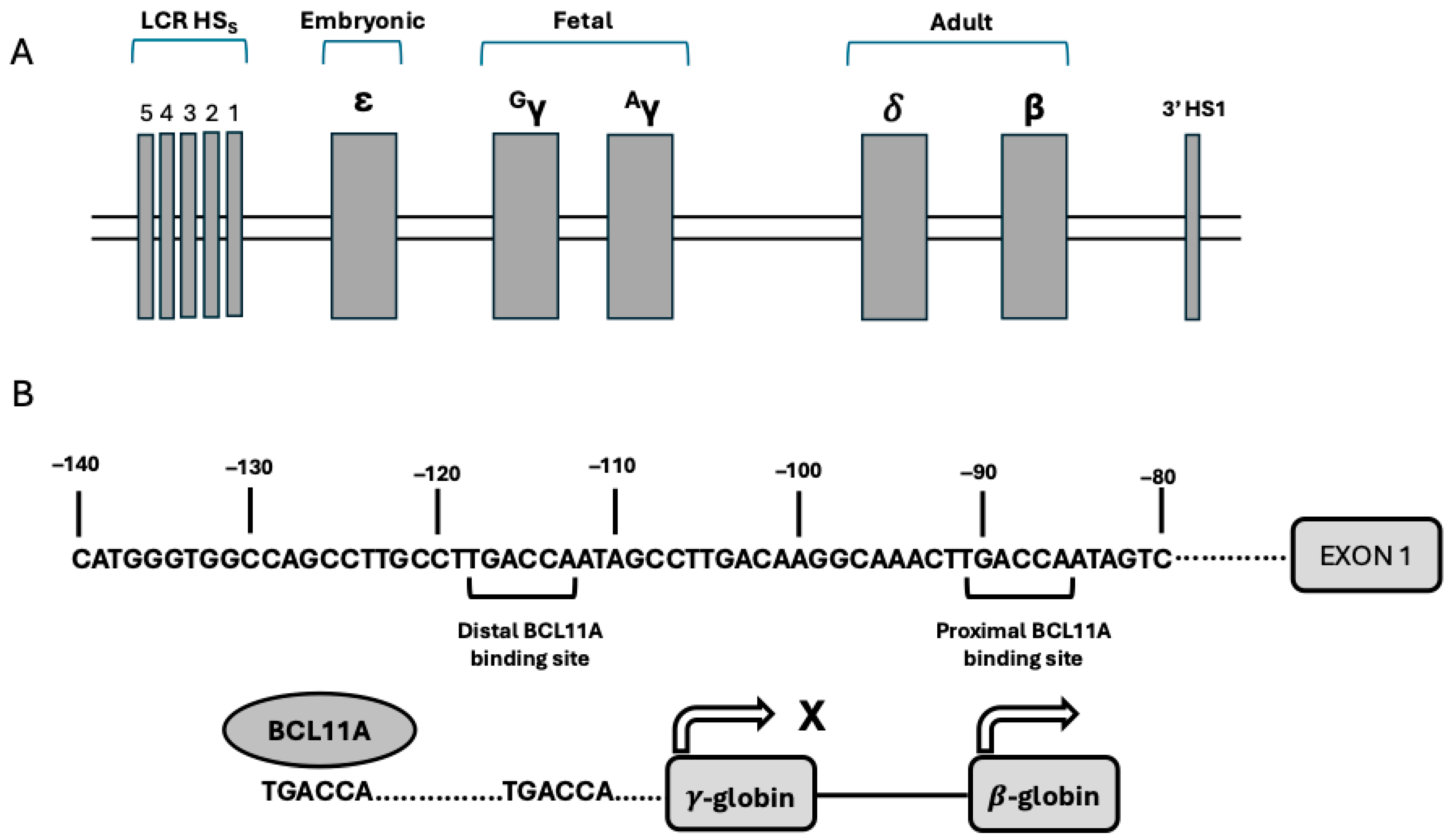 - Rajendiran, V.; Devaraju, N.; Haddad, M.; Ravi, N.S.; Panigrahi, L.; Paul, J.; Gopalakrishnan, C.; Wyman, S.; Ariudainambi, K.; Mahalingam, G.; et al. Base editing of key residues in the BCL11A-XL-specific zinc finger domains derepresses fetal globin expression. Mol. Ther. 2024, 32, 663–677. [Google Scholar] [CrossRef]