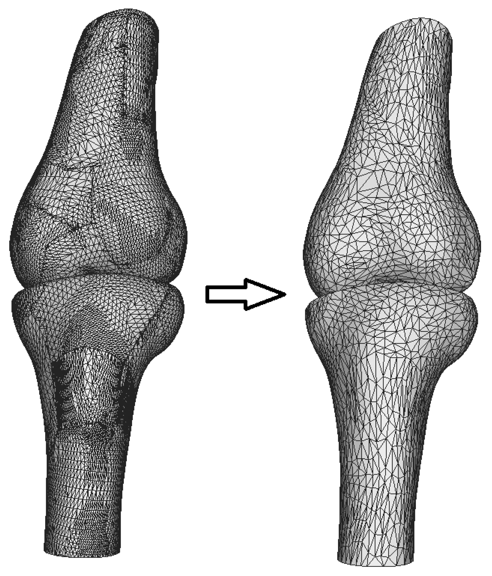 18], where final rendering of the mesh was completed, and the surfaces were converted into solid models of the femur and tibia.