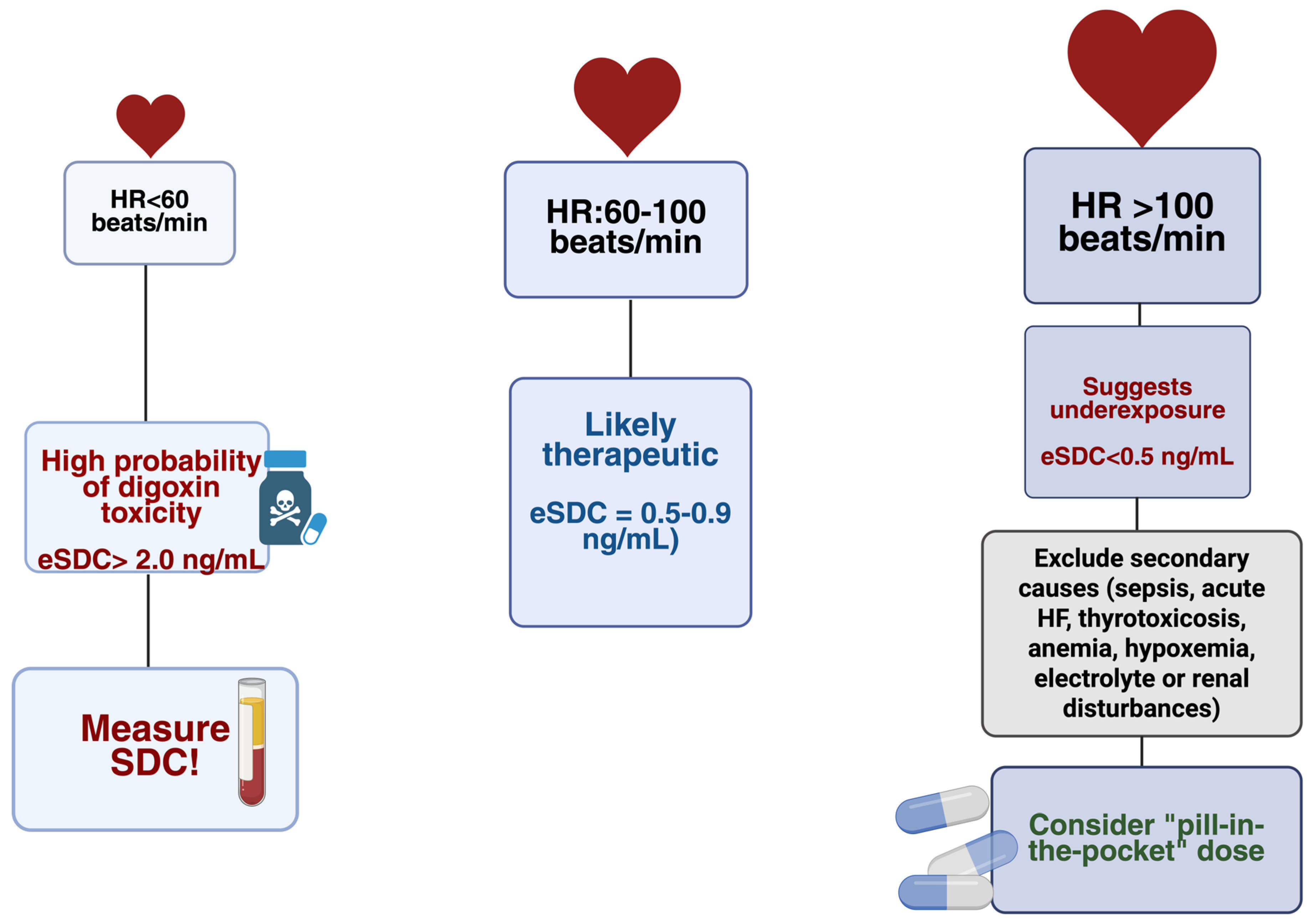 In contemporary digoxin management, SDC remains the cornerstone for dose titration and safety monitoring. However, SDC measurement is often limited by delayed laboratory turnaround, cost, and availability, particularly in ambulatory or resource-limited settings. We propose a physiologically grounded, context-based approach in which resting HR serves as a dynamic surrogate marker to estimate the probability of high or low SDC.