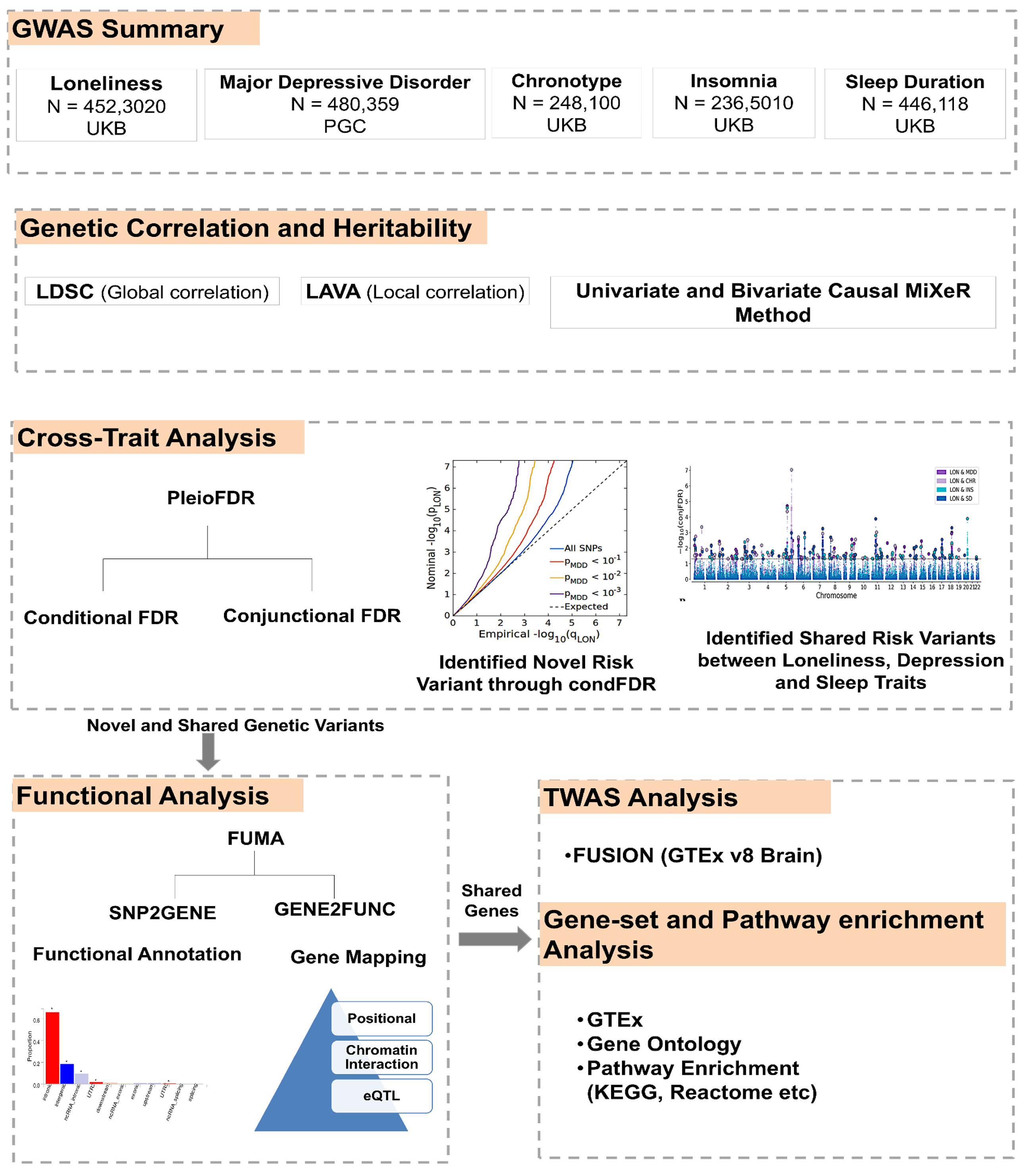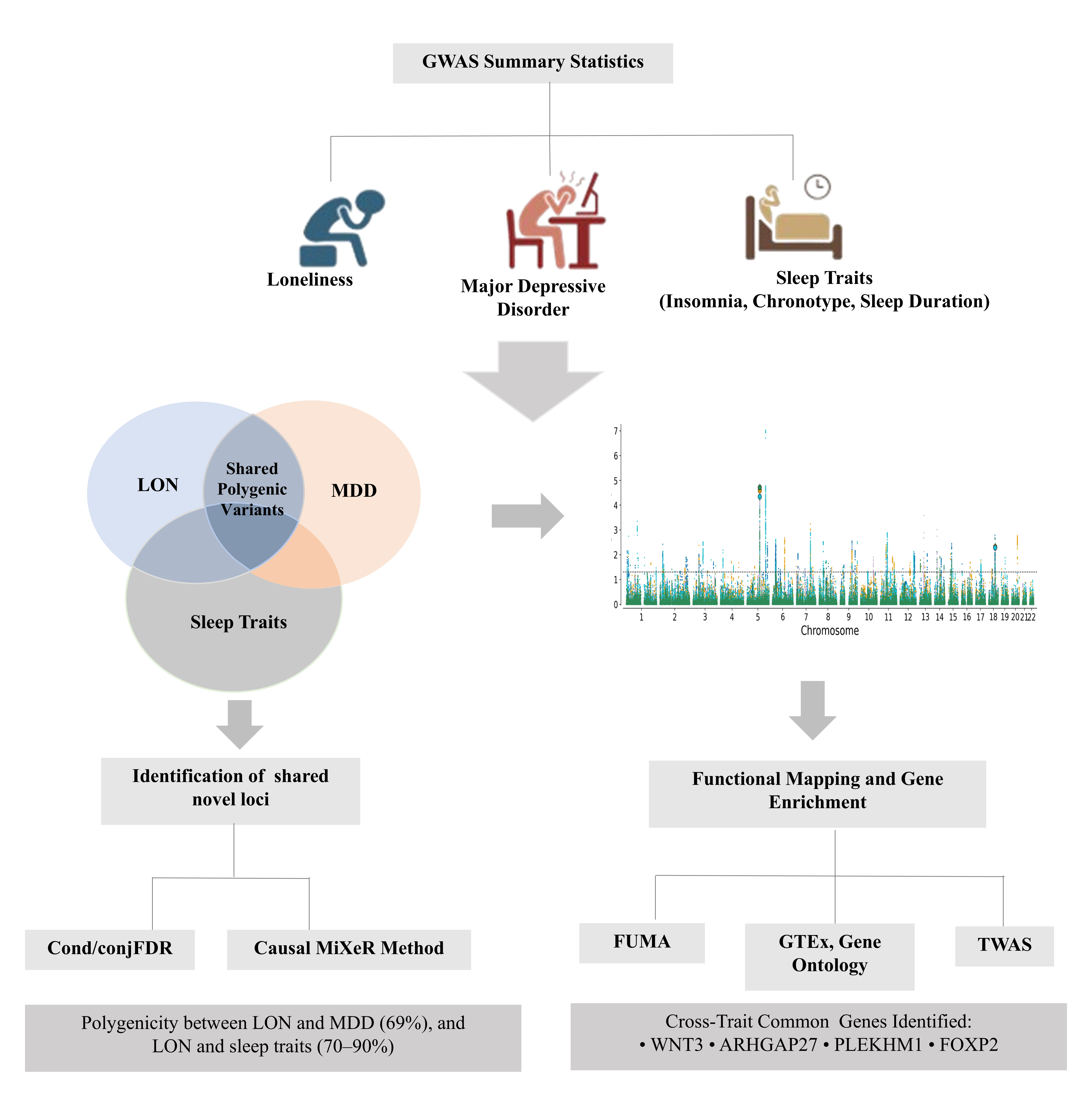 Rehman, Z.; Khan, A.A.; Ye, J.; Ma, X.; Kuang, Y.; Wang, Z.; Lan, Z.; Zhao, Q.; Yang, J.; Zhang, X.; et al. Unraveling the Shared Genetic Architecture and Polygenic Overlap Between Loneliness, Major Depressive Disorder, and Sleep-Related Traits. Biomedicines 2025, 13, 3101. https://doi.org/10.3390/biomedicines13123101