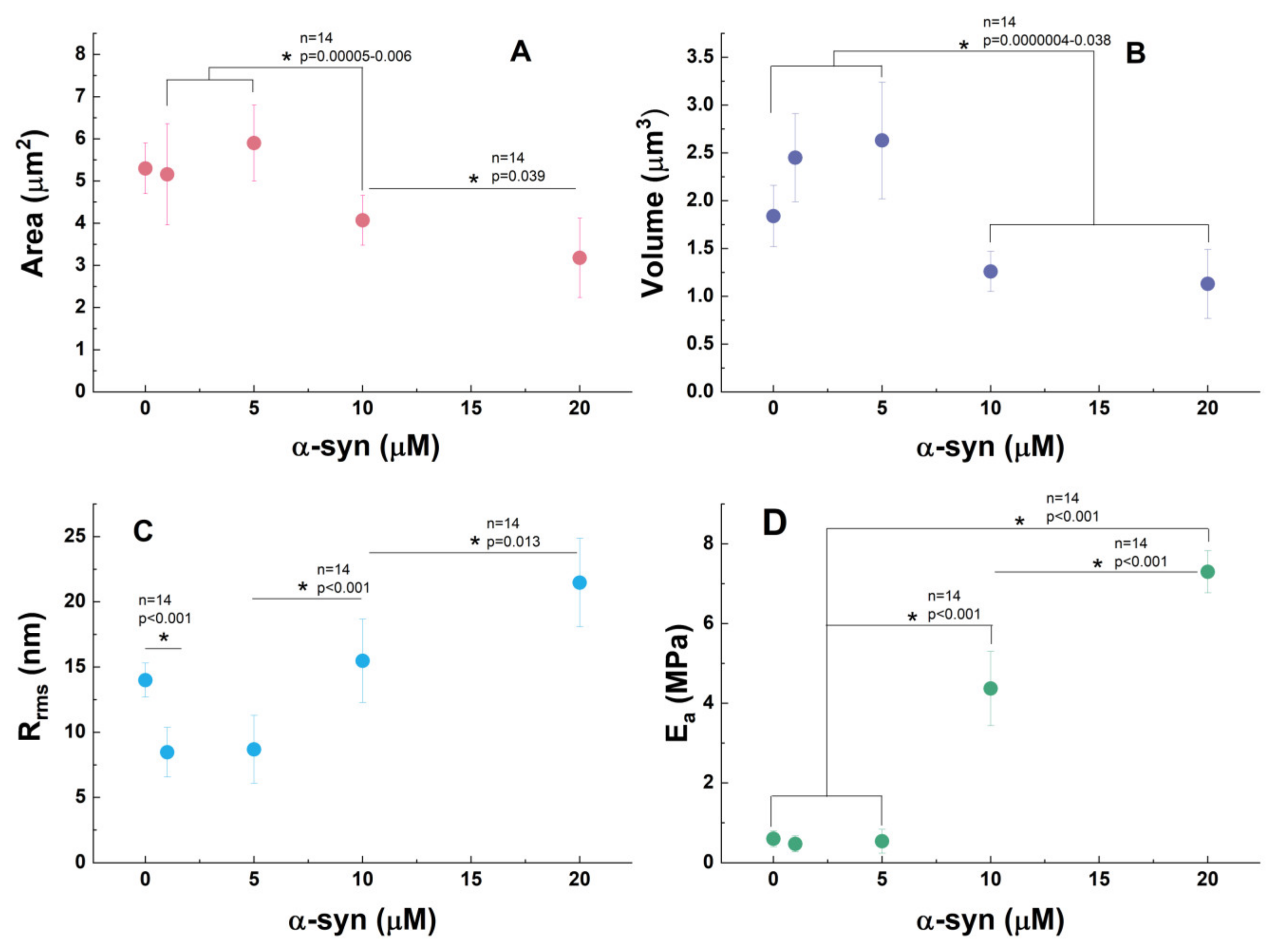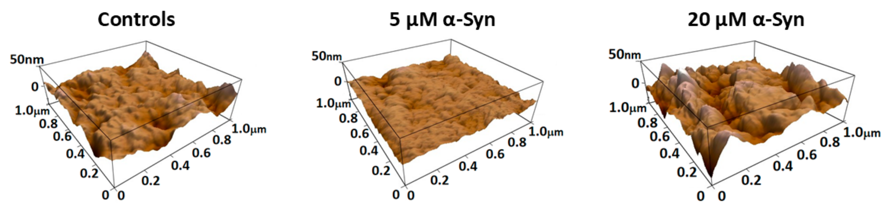 3.3. α-Synuclein Modifies PLT Morphometry and Nanomechanics