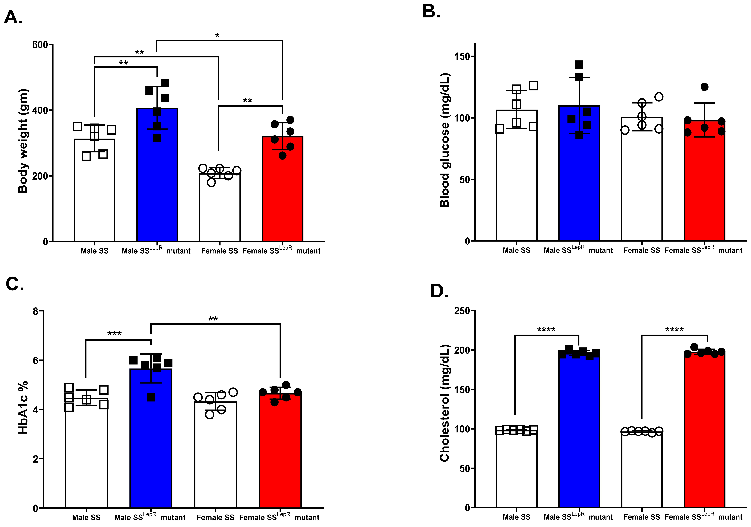 2.2. Metabolic Characterization of Female and Male SS and SSLepR Mutant Rats