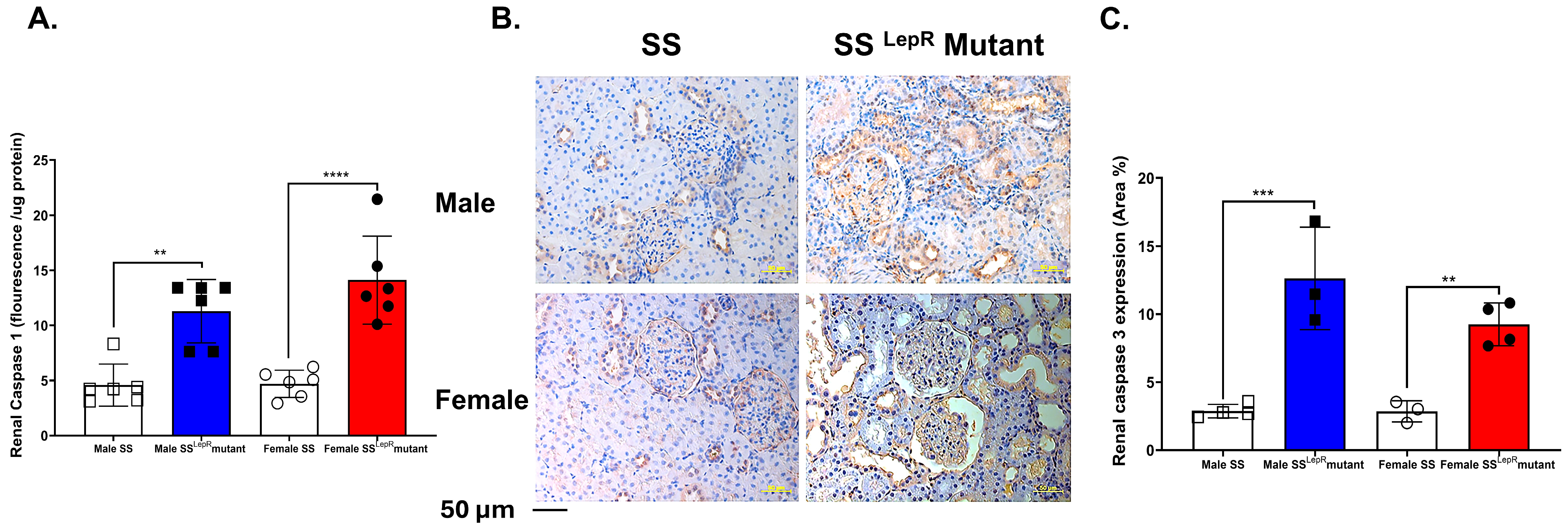 3.6. Renal Caspase-1 Activity and Caspase-3 Expression in SS and SSLepR Mutant Rats in Both Sexes