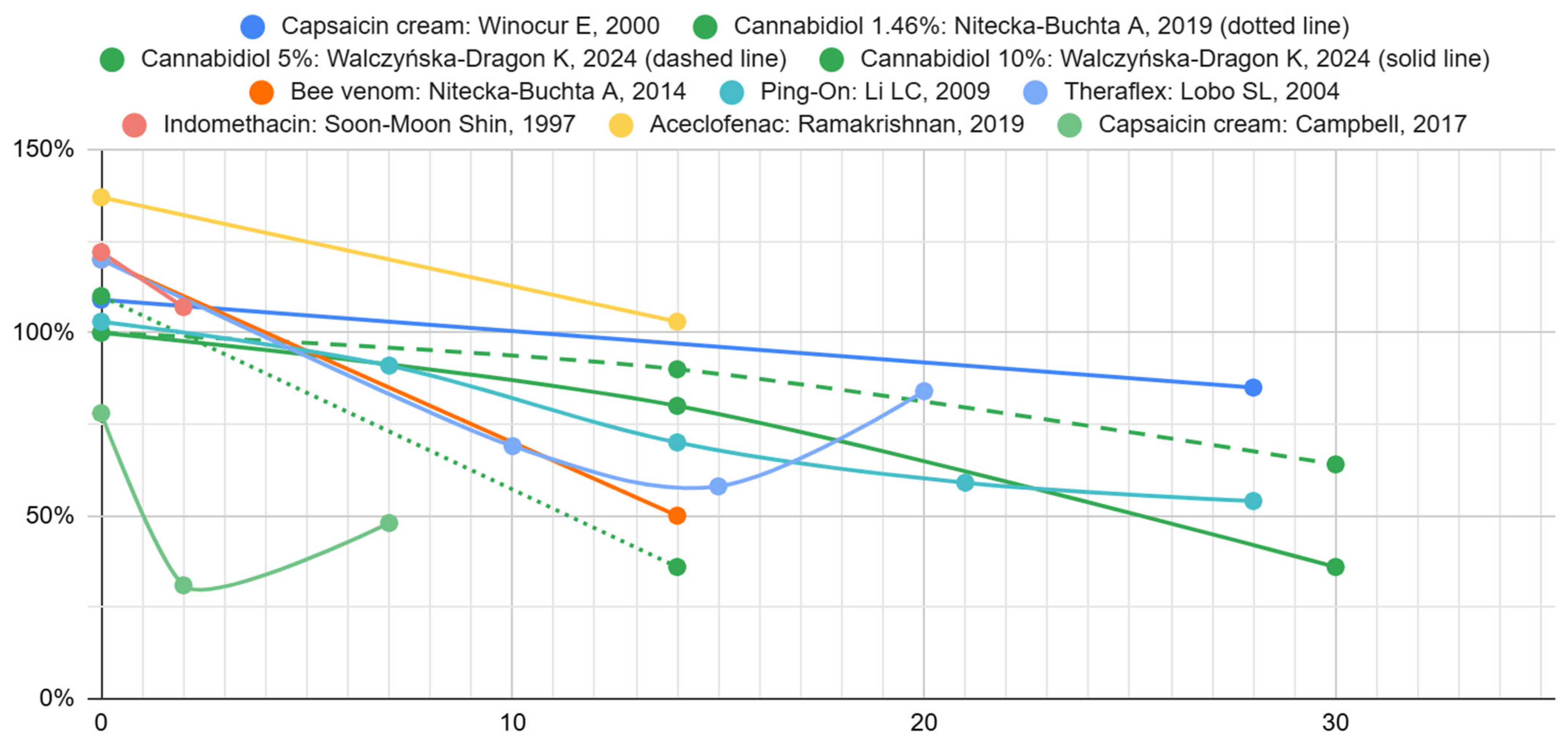 | Walczyńska-Dragon K, 2024 [33] | Cannabidiol 5% | Value | 6.00 | 4.50 | 3.50 | |||||||