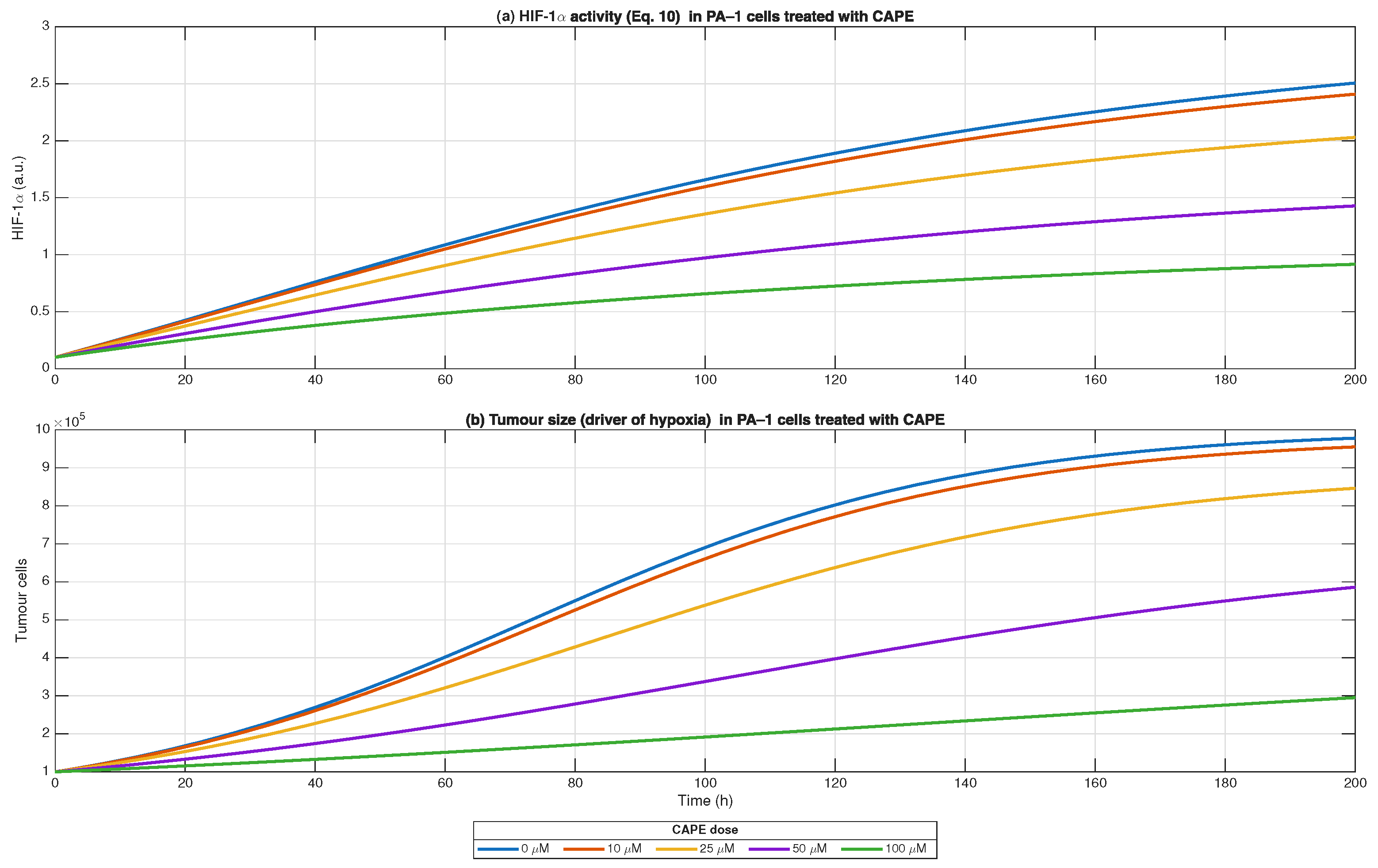 | CAPE-induced tumour suppression coefficient | h−1 | (dose–response mapping) This study, calibrated [8] |