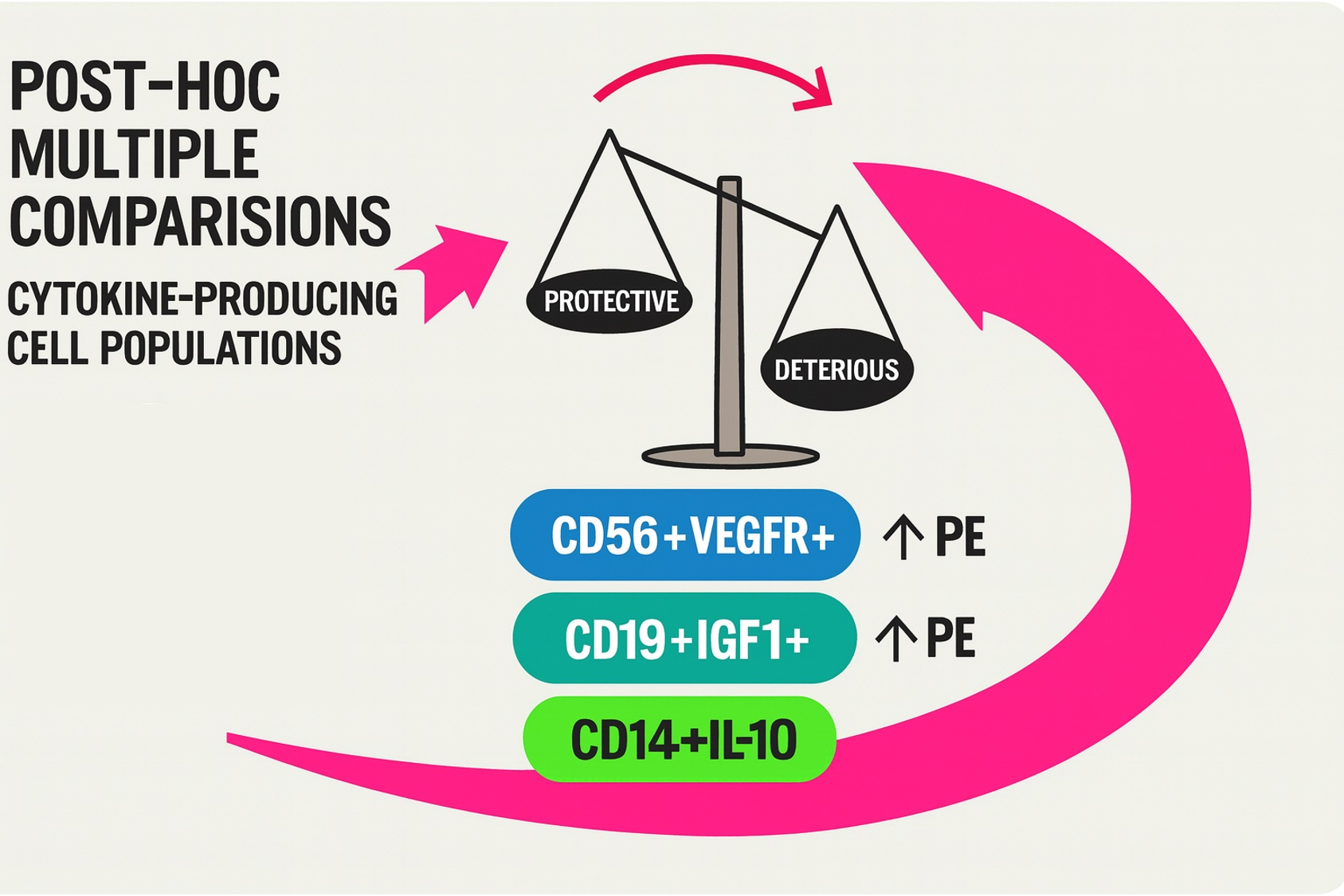 GM-CSF. GM-CSF plays a key role in regulating the immune response during pregnancy: it stimulates the differentiation of macrophages and dendritic cells and influences the balance of pro-inflammatory and regulatory T cells in the uteroplacental interface. However, this cytokine has been less studied in the context of PE. In the works of Jancsura et al. (2023) and Jancsura et al. (2025) [