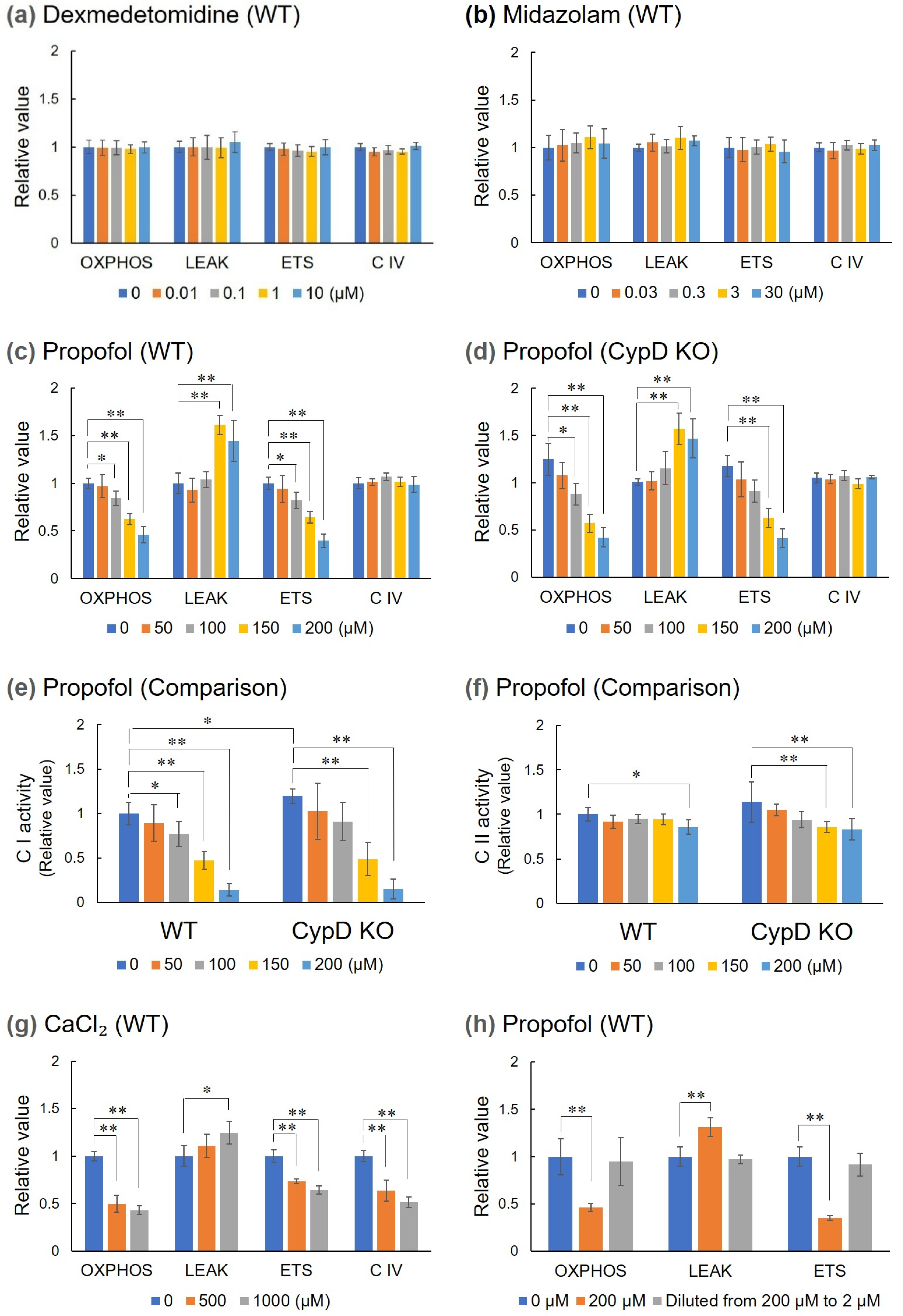 3.1. Effects of Sedatives on Mitochondrial Respiratory Capacity