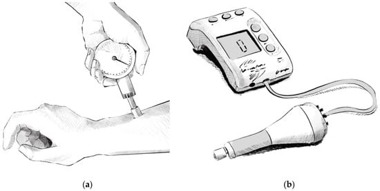 Digital pain meters (Figure 1b) are capable of collecting, storing and calculating statistics with the pressure applied. They are usually accompanied by computer software to collect the data. Other types of pain meter have been proposed []. Nevertheless, none of these devices are metal-free, and therefore they cannot be introduced into an MRI machine.