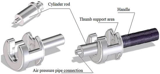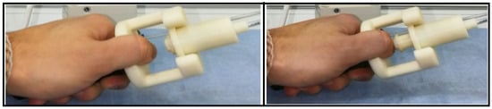 As can be seen in Figure 2, the handheld device has two MEX-built main sections: on one side, the thumb support area with the handle, and on the other side, the cylinder rod.