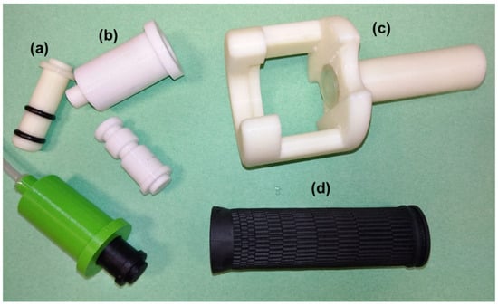ABS by MEX elements: (a) piston; (b) cylinder; (c) support; (d) rubber handle.