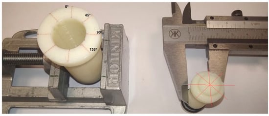 After printing the first prototypes, as specified in Table 1 for materials and printers, and trying to assemble them, a great variation in the printers’ tolerances could be seen. Measurements of the diameter of the hole in different positions are shown in Figure 7. The variability of these dimensions can be observed in Figure 8.