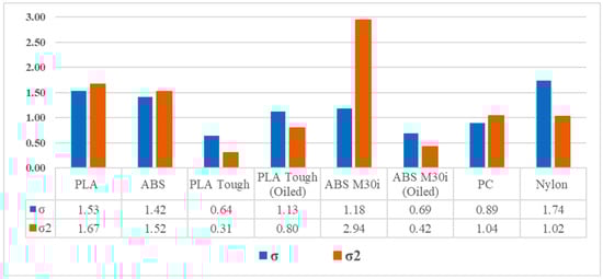 Materials and printers with less dimensional variability are those with the best surface finish. In addition, the best results were obtained for those built in PLA Tough (3) and ABS M30i (4).
