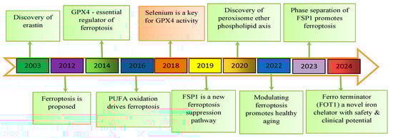 - Zhang, L.; Luo, Y.L.; Xiang, Y.; Bai, X.Y.; Qiang, R.R.; Zhang, X.; Yang, Y.L.; Liu, X.L. Ferroptosis inhibitors: Past, present and future. Front. Pharmacol. 2024, 15, 1407335. [Google Scholar] [CrossRef] [PubMed]
