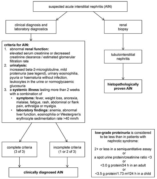 - Alexopoulos, E. Drug-Induced Acute Interstitial Nephritis. Ren. Fail. 1998, 20, 809–819. [Google Scholar] [CrossRef]
