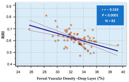 The inverse relationship between the RRI and the deep foveal density appeared particularly strong (Figure 1).