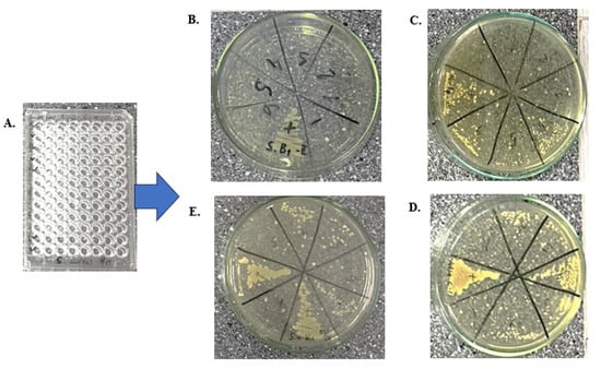 S. aureus ATCC 25923 and MRSA ATCC 2758 were cultured in a normal medium and spread evenly on Baird-Parker (BP) agar (Biolab, Budapest, Hungary), a selective medium. The cultures were incubated at 37 °C for 24 h. Colonies grown on Baird-Parker agar were concluded to be Staphylococcus aureus. Two to three separate colonies were selected, and a bacterial suspension to 0.5 McFarland standard was prepared and diluted in 0.9% physiological solution.