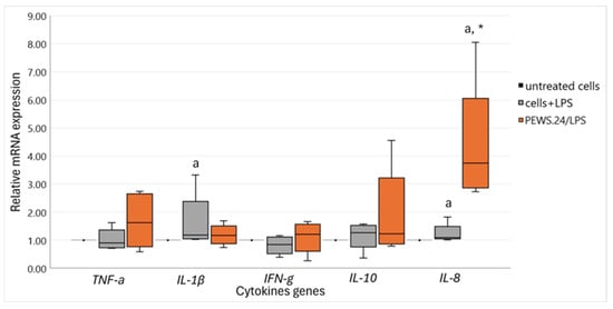 3.2. Immunomodulatory Impact of FS-PEWS on Cytokine mRNA Expression Levels in the LPS-Stimulated Caco-2 Cells