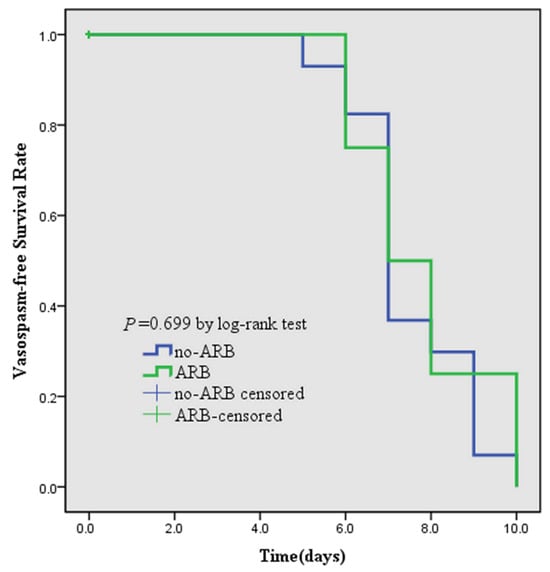 Kaplan–Meier curve depicting the vasospasm-free survival rate based on ARB administration.