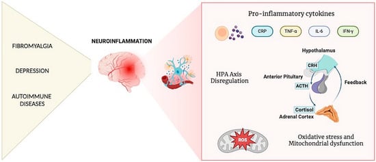 Neuroinflammation, HPA axis dysregulation, and oxidative stress in fibromyalgia, depression, and autoimmune diseases.
