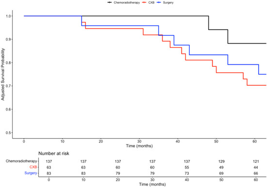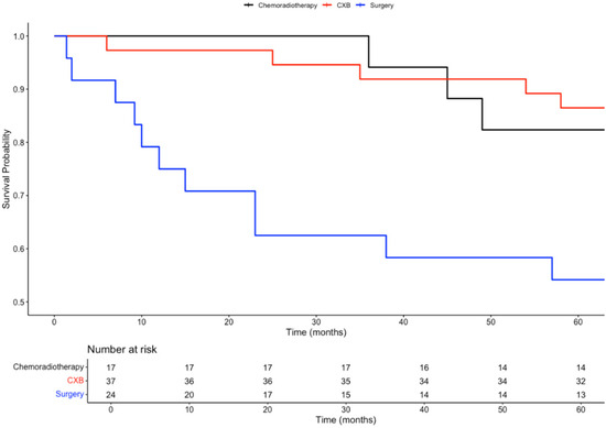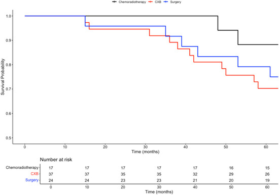 3.2. Survival Analysis Between Curative Treatment Outcomes