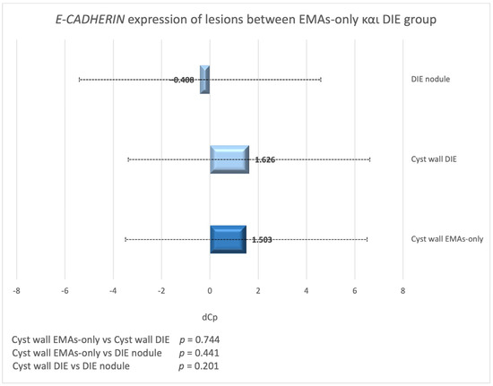 dCp value of E-CADHERIN in endometriotic cysts and nodules in DIE and EMAs-only group.