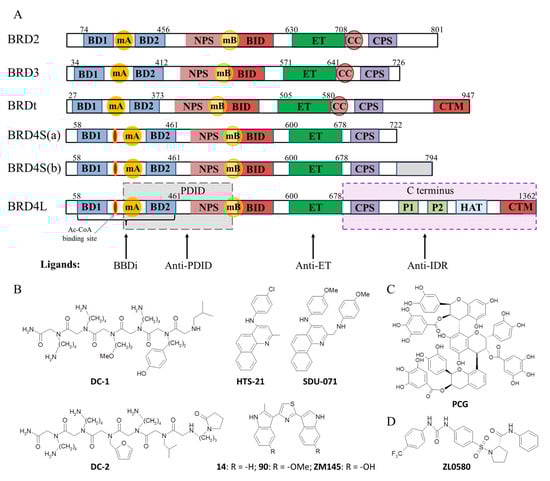 - Divakaran, A.; Harki, D.A.; Pomerantz, W.C.K. Recent progress and structural analyses of domain-selective BET inhibitors. Med. Res. Rev. 2023, 43, 972–1018. [Google Scholar] [CrossRef]