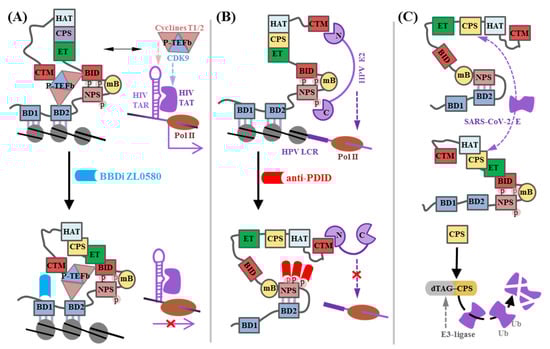 - Zandian, M.; Chen, I.P.; Byrareddy, S.N.; Fujimori, D.G.; Ott, M.; Kutateladze, T.G. Catching BETs by viruses. Biochim. Biophys. Acta Gene Regul. Mech. 2022, 1865, 194859. [Google Scholar] [CrossRef] [PubMed]