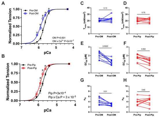 3.1. Tension vs. Calcium Concentration Relationship Before and After OM and Piperine Treatment