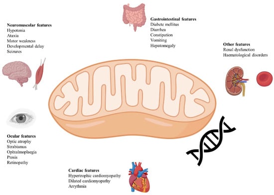 Non-neurological manifestations of LS may include dysmorphic features, although very rarely cardiac abnormalities (hypertrophic/dilated cardiomyopathy), and less frequently reported endocrine features (hypertrichosis and short height), gastrointestinal symptoms [,], diabetes mellitus, anemia, sleep disturbances, renal failure, hearing loss, and scoliosis. The majority of patients die before 3 years of age from sudden respiratory failure []. Cardiac manifestations, such as hypertrophic or dilated cardiomyopathy and conduction defects, have been reported in approximately 15% of individuals with LS []. Cardiomyopathy has been observed in up to 70% of individuals with an MT-ND5 variant [].