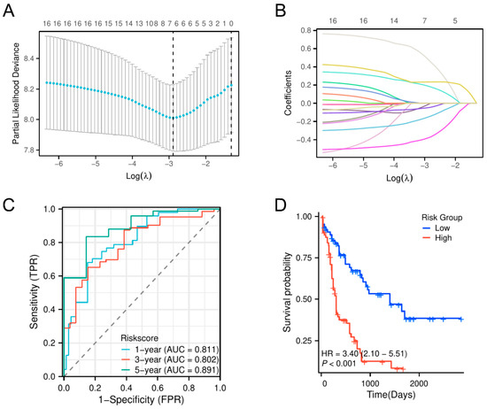 2.3. Construction of a Novel AML Prognostic Risk Model Based on GRGs
