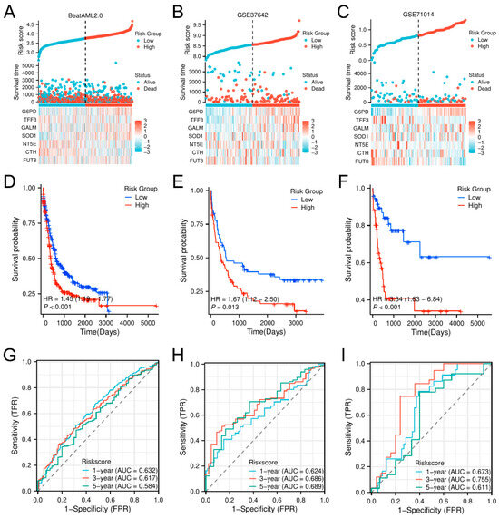 3.3. Validation and Prognostic Assessment of the Glycolysis-Related Prognostic Model (GPM) for Overall Survival in AML Across Multiple Independent Datasets