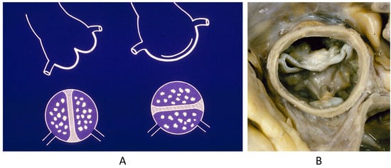 - Thiene, G.; Basso, C.; Rizzo, S.; Della Barbera, M.; Valente, M.; Bortolotti, U. (Eds.) Pathology of Cardiac Valve Disease Surgical and Interventional Anatomy; Springer: Cham, Switzerland, 2023; ISBN 978-3-031-35497-7. [Google Scholar]