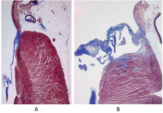 Mitral valve prolapse is a CHD because of the disjunction of the atrial and ventricular myocardium at the annulus insertion (Figure 11) [19]. In this setting, the billions of ventricular systoles which close the valve orifice during life account for traumatic injury of the leaflets with myxoid degeneration, mitral prolapse, and incompetence, as well as fibrosis of the papillary muscles and ventricular myocardium, which is an arrhythmic substrate placing the patient at risk of sudden death [19].