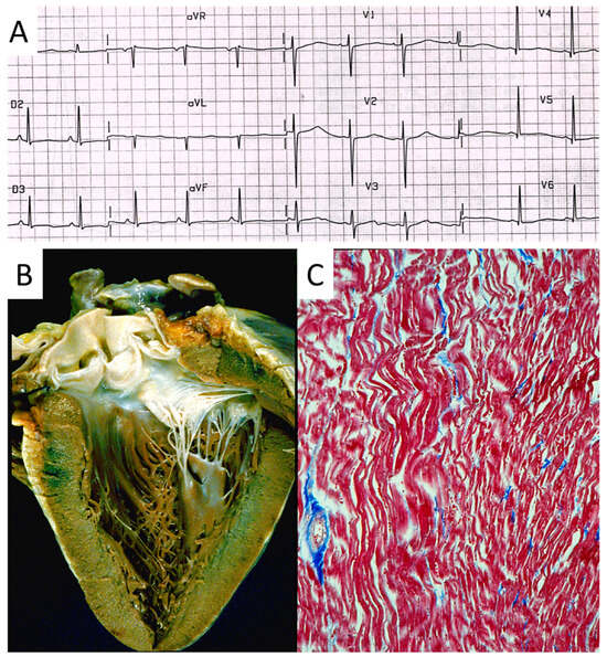 Sudden death in a 20-year-old young adult with long QT in an electrocardiogram image (A). The heart is normal in gross (B) and histology (C) views [15].