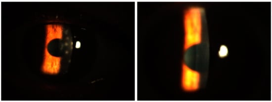 Epidemic keratoconjunctivitis (EKC), which occurs approximately ten days after the onset of follicular conjunctivitis, can lead to the development of subepithelial corneal infiltrates (SEIs) [1]. SEIs are often seen in both eyes and are histologically asymmetrical. SEIs consist of aggregations of lymphocytes, histiocytes, and fibroblasts, all of which may also damage the collagen fibers of Bowman’s layer [2]. SEIs can cause significant ocular disability, resulting in decreased vision, sensitivity to light, glare, perception of halos around lights, and a foreign body sensation. These symptoms can persist for months or even years after the initial infection. Recent studies suggest that EKC remains a significant public health concern, with an estimated incidence of adenoviral conjunctivitis ranging from 20% to 40% among ocular infections globally and SEIs developing in up to 40–50% of cases, underscoring the need for effective management strategies [1,3].