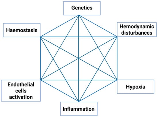 A complex interplay between immunity and other essential factors in the pathophysiology of pulmonary embolism—a mosaic theory of acute pulmonary embolism [8]. The figure was created with the usage of BioRender software (https://www.biorender.com/).