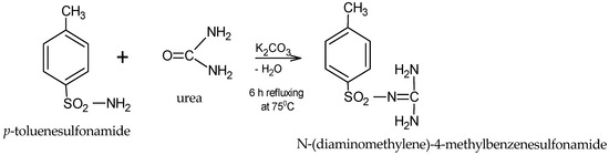 The synthesis of N-(diaminomethylene)-4-methylbenzenesulfonamide (compound S) was carried out by reacting p-toluenesulfonamide with urea in the presence of potassium carbonate (K2CO3) at 75 °C for 6 h. The water generated during the reaction was removed.